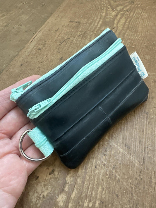 Small zipper pouch Light Blue recycled bicycle inner tube by Re-Inflatables