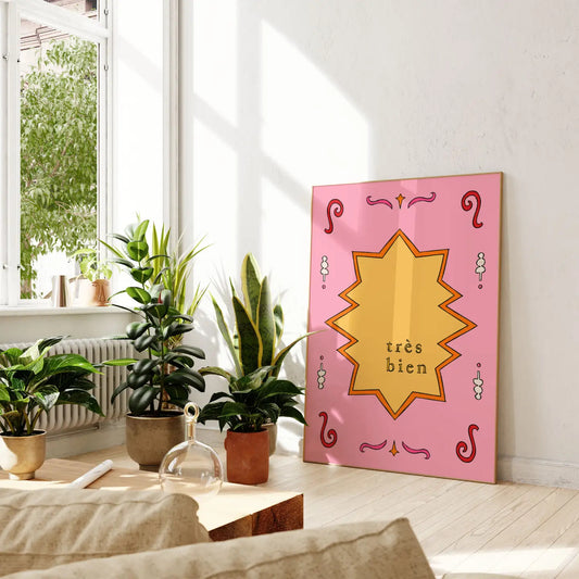 Tres Bien Art Print, Pink and Yellow Wall Art by Freya Niamh Design
