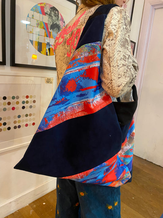 Handmade Upcycled Black Red and Blue Bag by RELAB