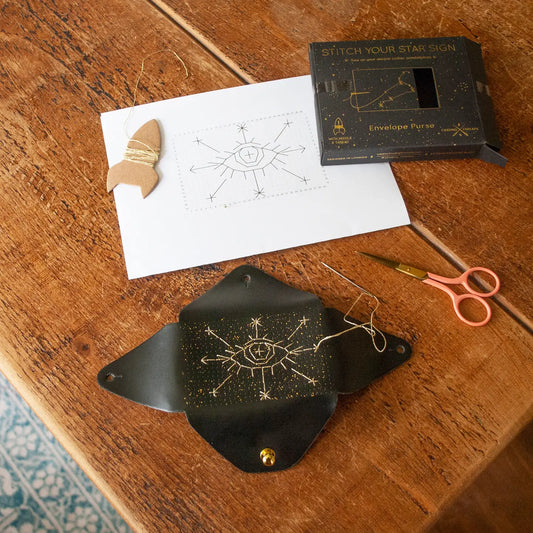 Diy Stitch Your Star Sign Kit - Black Vegan Leather Purse by chasing Threads