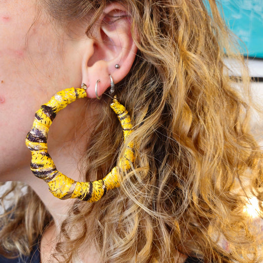 Yellow Fabric Handmade Earrings by Gangster Wraps