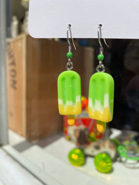 Ice Pops Green Yellow steel silver earrings by Thanks for Nothing