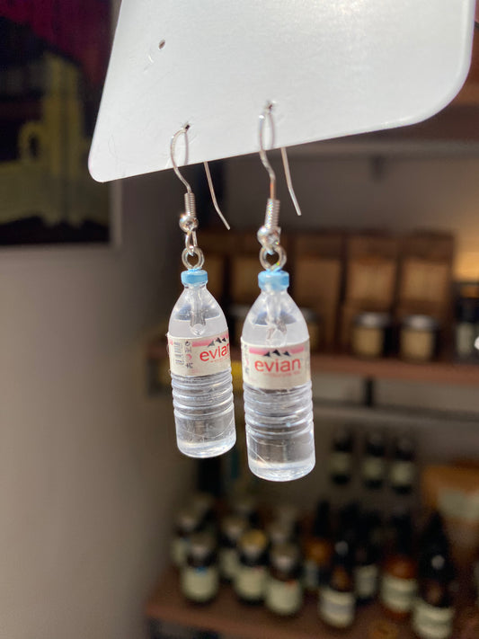 Evian Water bottle steel silver earrings by Thanks for Nothing