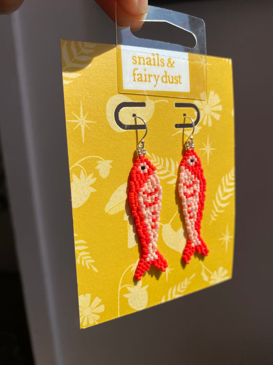 Red Fish Beaded Earring by Snails & Fairy Dust
