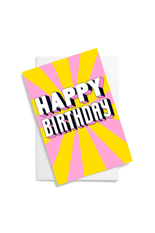 Bold Happy Birthday Card: Bright Yellow & Pink Striped Greeting by Ellen Jane London