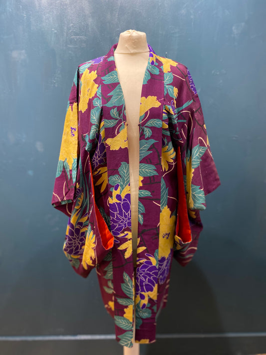 Japanese Vintage Floral Kimono Haori 100% Silk by Kimono Lab