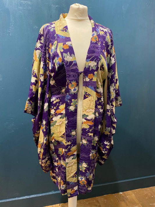 Japanese Vintage Purple Kimono Haori 100% Silk by Kimono Lab