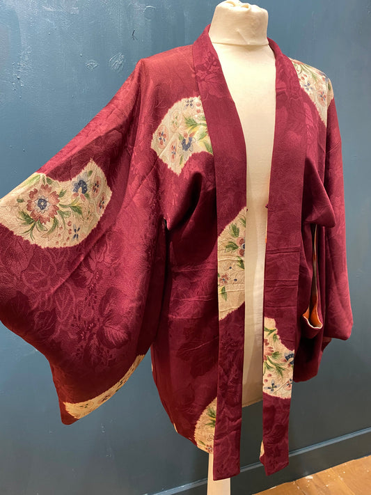 Vintage Japanese Kimono Burgundy Haori 100% Silk by Kimono Lab