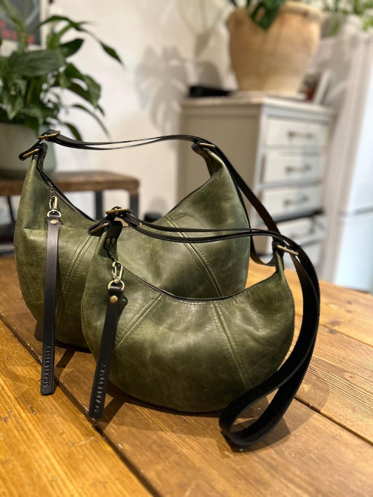 Small Leather Crescent Bag With Adjustable Strap and Zip by ScarlettSky