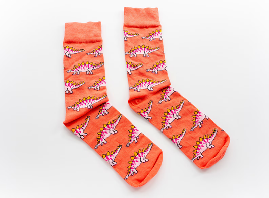 Stegosaurus dinosaur orange pair of socks by Designosaur
