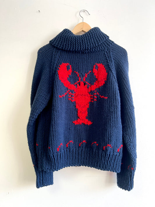 Lobster Chunky Navy Handknit Cardigan by Bucko