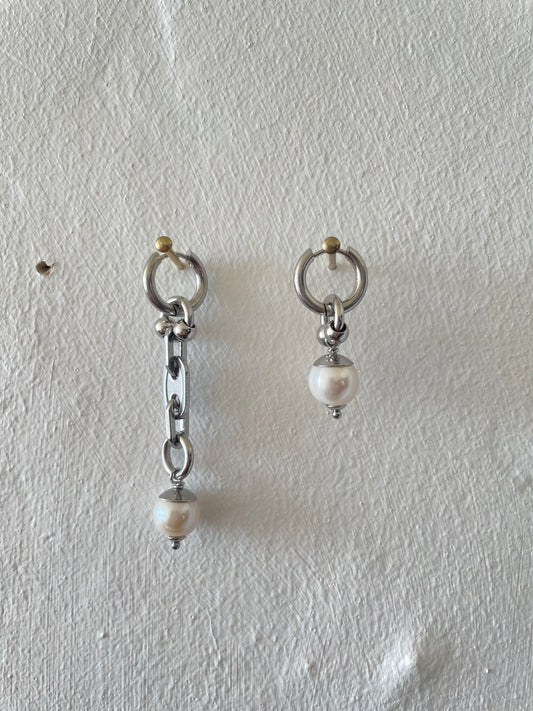 Stainless steel earrings with repurposed pearls by Eloy Santos