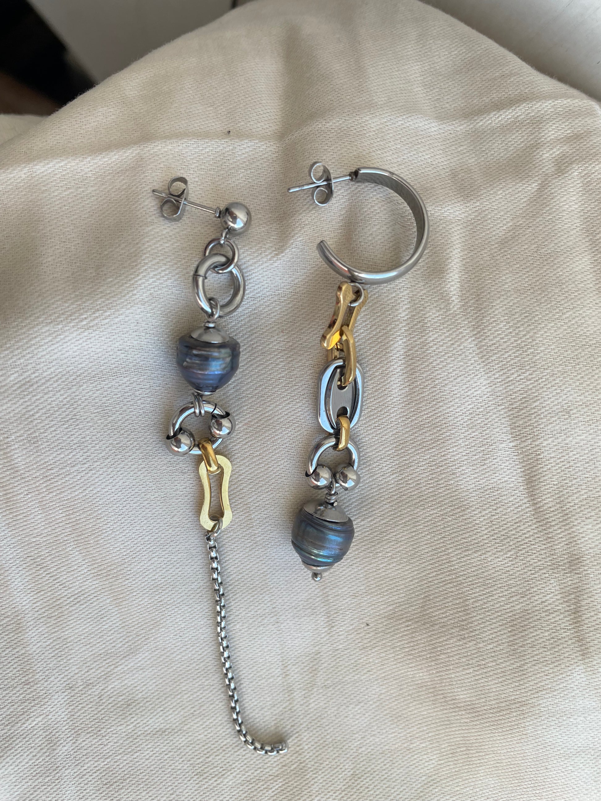 mixmatched repurposed freshwater pearls in stainless steel hardware. size: 6-10cm length
