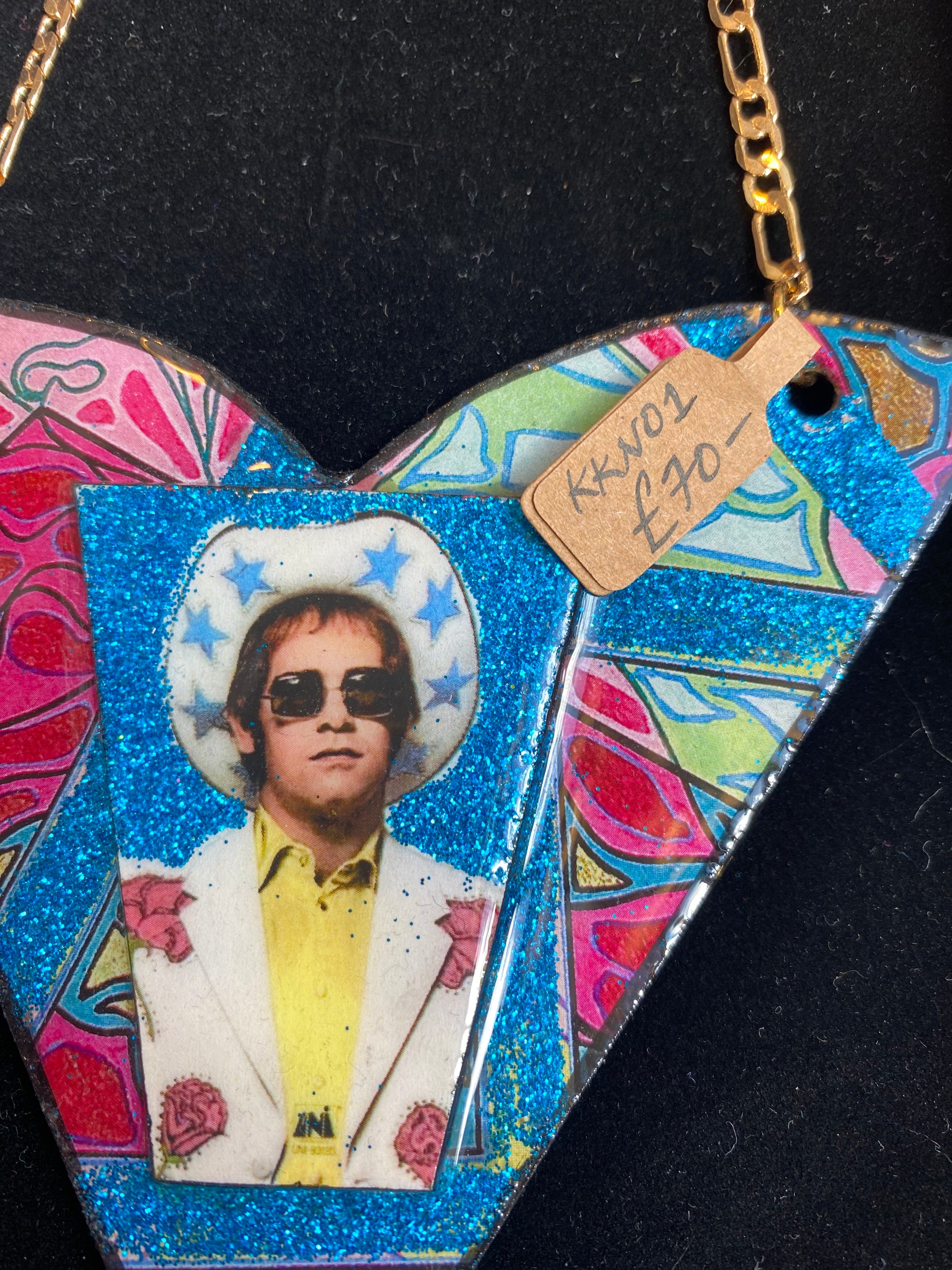 Elton John one of a kind hand painted Necklace by KIKI Na Art