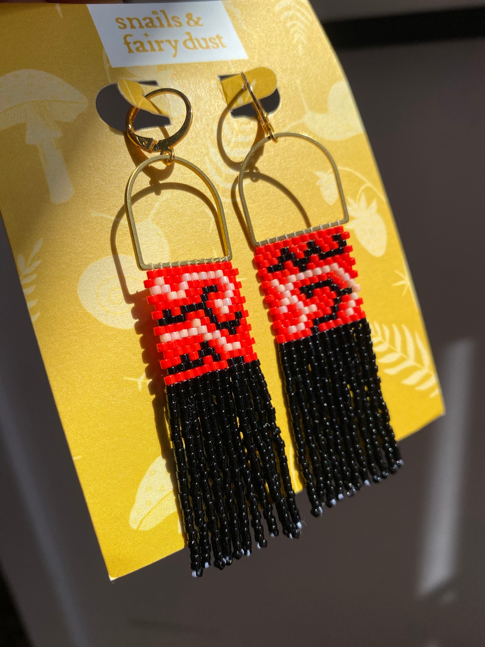 square Red Beaded Earring handmade by Snails & Fairy Dust