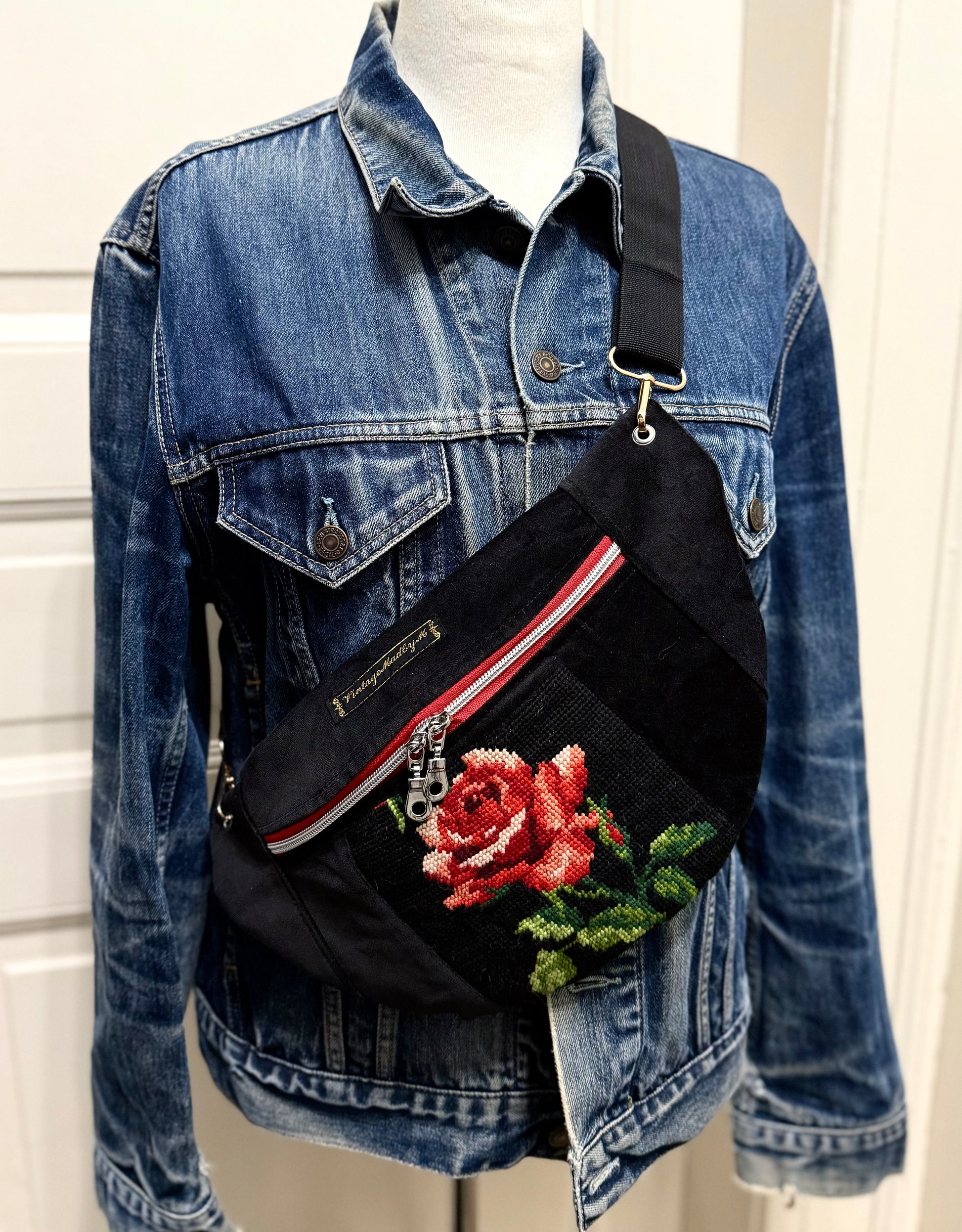 Vintage needlepoint red zip French vintage tapestry bum bag by Vintagemadbym