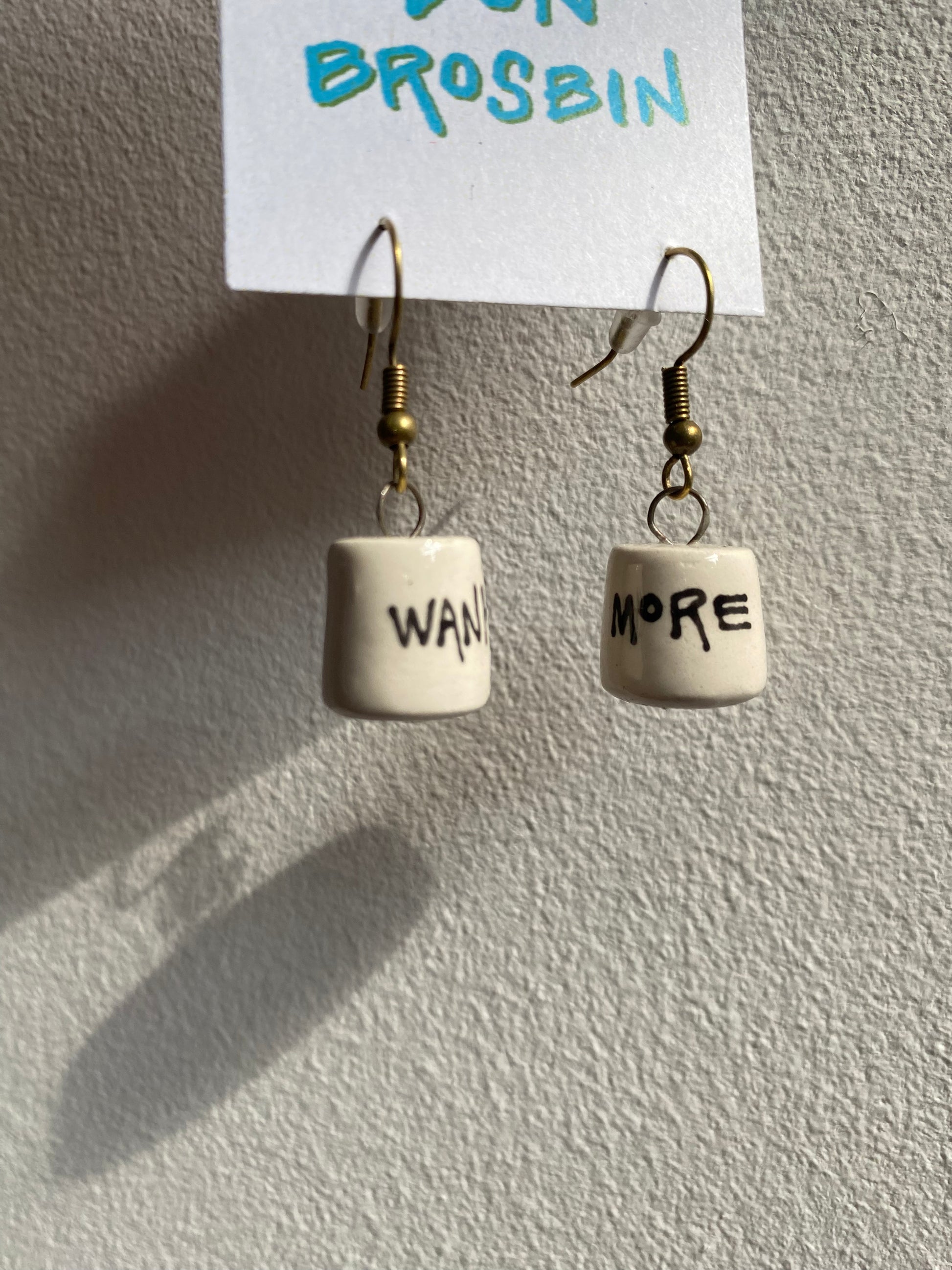 Ceramic earrings by Don Brosbin. Each pair is lovingly handmade, making them truly one-of-a-kind.